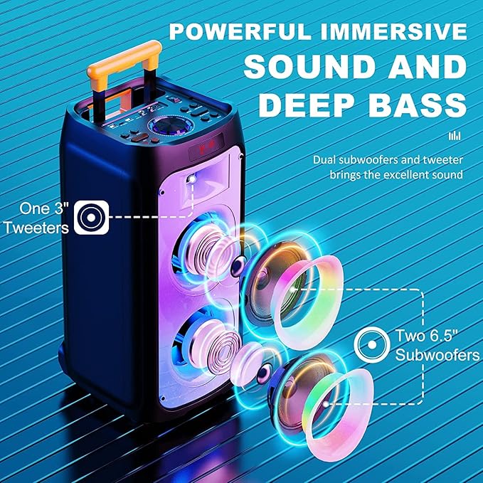 - 【Powerful immersive sound and deep bass】Two 6.5-inch bass speakers + 3-inch tweeter speakers, traditional sounds want to achieve wonderful bass effect often need very complex and large speakers, but JYX speakers break through the traditional technology, combined with the advantages of fully digital electronic crossover, easily transfer a rich stereo sound effect. powerful without distortion, and the sound is balanced and loud