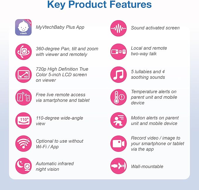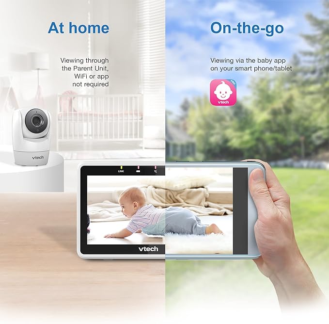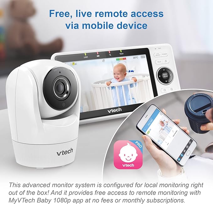 VTech Upgraded Smart WiFi Baby Monitor VM901, 5-inch 720p Display, 1080p Camera, HD NightVision, Fully Remote Pan Tilt Zoom, 2-Way Talk, Free Smart Phone App, Works with iOS, Android